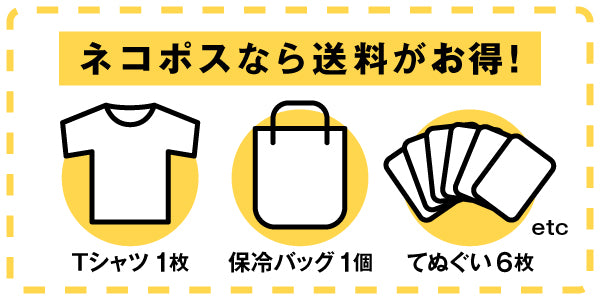 Tシャツやてぬぐいなどの一部グッズはネコポスにて配送させていただきます。